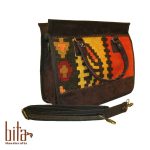 کیف دوخانه گلیمی حاشیه تک گل، یک کیف سنتی دستی و دوشی ایستا است با ابعاد تقریباً بزرگ، با بند دستی مجزا و بند بلند قابل تنظیم. برای دو روی این کیف سنتی از گلیم دستباف پشمی و برای دیواره های آن از اشبالت صنعتی استفاده شده است. برای قسمتهای قهوه ای رنگ از اشبالت صنعتی درجه یک استفاده شده است. ابعاد مناسب برای کاغذ A4 ، جادار بودن، ایستایی، تنوع طرح و رنگ و وزن سبک آن، این کیف را برای افراد مختلف به گزینه ای قابل تأمل برای انتخاب تبدیل نموده است.