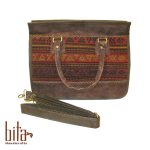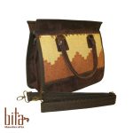 کیف گلیمی مستطیل دوخانه دو رنگ، یک کیف سنتی دستی و دوشی ایستا است با ابعاد تقریباً بزرگ، با بند دستی مجزا و بند بلند قابل تنظیم. برای دو روی این کیف سنتی از گلیم و جاجیم دستباف پشمی و برای دیواره های آن از اشبالت صنعتی استفاده شده است. برای قسمتهای قهوه ای رنگ از اشبالت صنعتی درجه یک استفاده شده است. ابعاد مناسب برای کاغذ A4 ، جادار بودن، ایستایی، تنوع طرح و رنگ و وزن سبک آن، این کیف را برای افراد مختلف به گزینه ای قابل تأمل تبدیل نموده است.