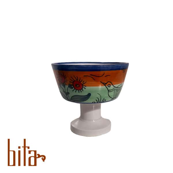 نقاشی های روی این بستنی خوری چینی کاملا با دست طراحی و رنگ آمیزی شده است و در کوره با دمای حدود 1400 درجه گذاشته می شوند به همین دلیل رنگ آنها ثابت است و در درجه حرارت بالا مقاوم هستند.